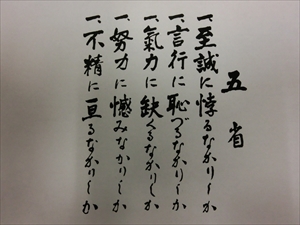 反省するため、自らへ発していた五つの問いかけのことであり、幹部候補生学校となった現在でもその伝統は受け継がれています。