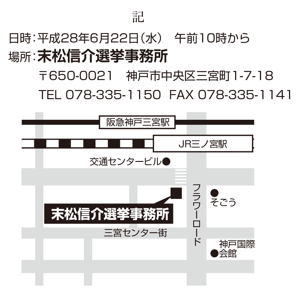 ご多忙とは存じますが、是非ともお誘い合わせの上ご出席賜り、末松信介に力強い激励を賜りますようお願い申し上げます。